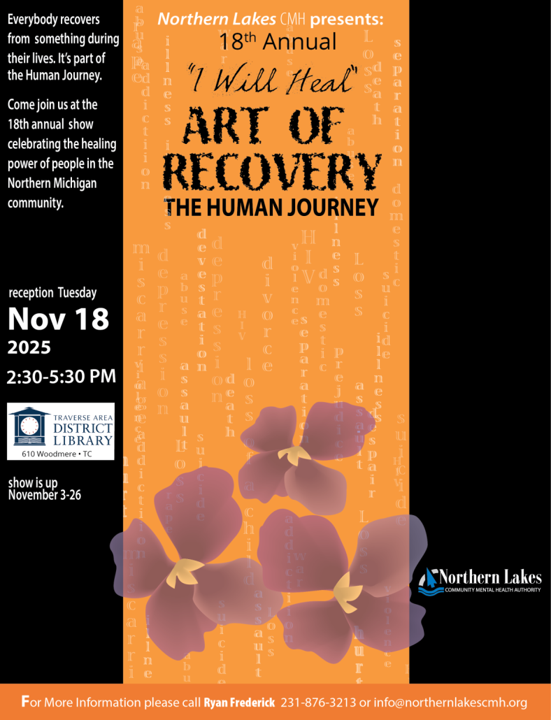 Entries are open to anyone who is recovering or has recovered from anything who lives in the six counties served by NLCMH: Crawford, Grand Traverse, Leelanau, Missaukee, Roscommon, Wexford.