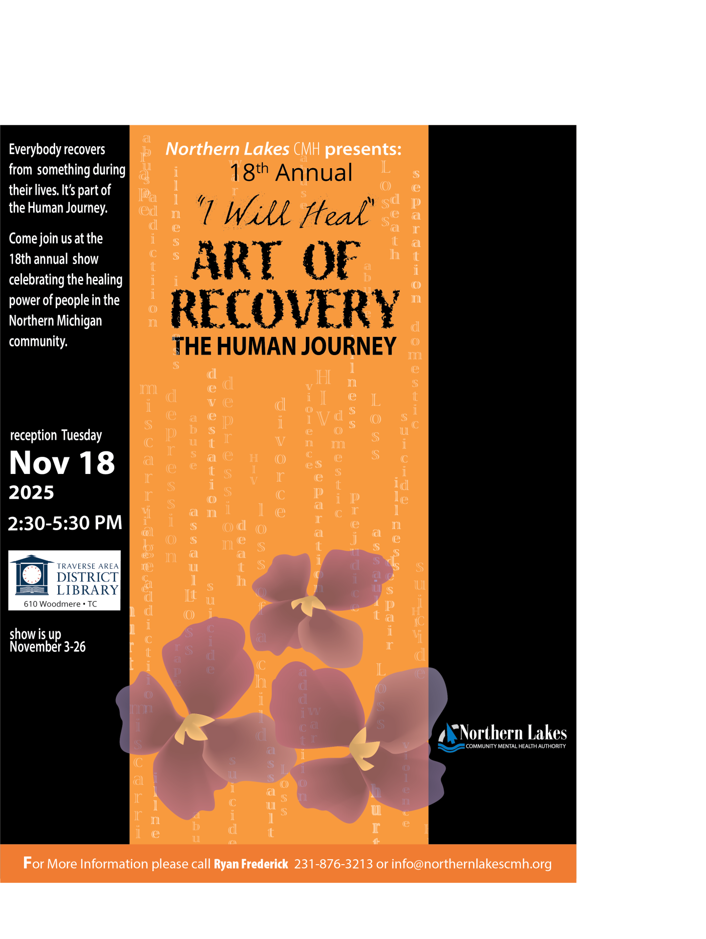 Northern Community Mental Health (NLCMH) is calling for entries for its 18th Annual Art of Recovery: The Human Journey show through Friday, October 24, 2025.